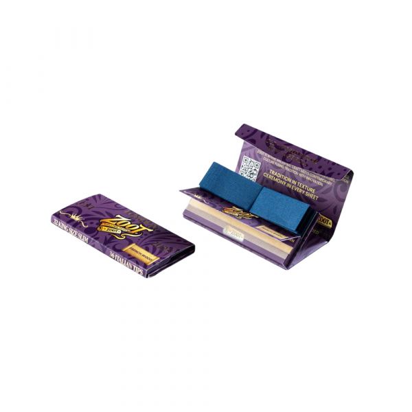 The Purple Pack is the most premium format in the Zoot Original range, designed for customers who want a cleaner, slower and more refined rolling experience. It contains 32 King Size Slim ultra-thin rolling papers made from unbleached French wood pulp, paired with 36 Italian-made filter tips for a complete all-in-one solution.